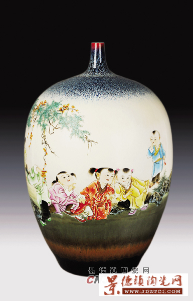 收藏起夢想之后,她安靜地做著瓷廠的工作,業(yè)余時間她還是會寫寫畫畫,從來沒有怠慢自己的對繪畫的愛好。亦如,眾多女子的歸宿一樣,結(jié)婚生子也是她的必經(jīng)之路,婚后生活她的重心更多地放在撫育孩子的上面,不過,也正是這樣一段經(jīng)歷讓她的“嬰戲”系列作品有著更加生動的元素,滿滿的母愛。欣賞徐筱蓮的“嬰戲”作品,明快的用色,流暢的構(gòu)圖,透著現(xiàn)代表情的孩童,咋一眼覺得是在觀賞舊時小孩的天真嬉戲,但,不知不覺,就區(qū)分開了此時與彼時的不同。