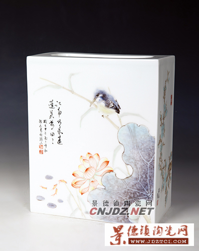 經(jīng)過幾年不斷摸索與選擇,程遠(yuǎn)和保娟覺得粉彩瓷能更好地將自己的藝術(shù)看法表達(dá)出來,而他們的粉彩瓷又有別于傳統(tǒng)的粉彩,他們在保留粉彩原有藝術(shù)特點(diǎn)的同時,運(yùn)用粉彩的手法表現(xiàn)出國畫的韻味,他們的粉彩瓷顏色清雅,脫俗,富有層次感,符合現(xiàn)代的審美情趣。